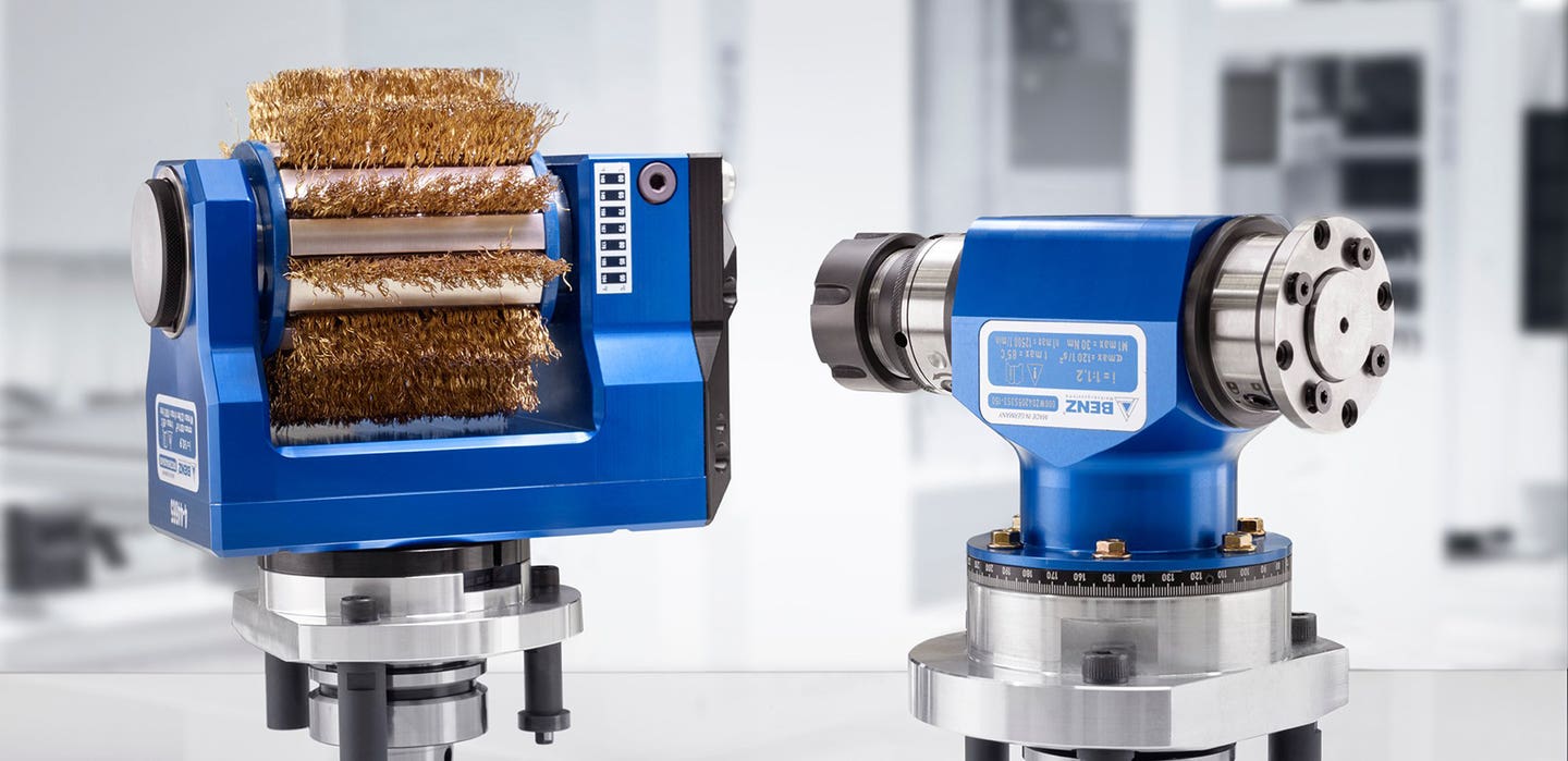Three-axis CNC machines generally have the spindle mounted perpendicular to the machine bed allowing for a broad range of cutting and shaping operations. But what if you need something more like boring edges, sawing or bevel cuts? You can look to aggregates to add capability to your machine. Aggregates are basically a gear box that changes the rotation axis of the spindle to another angle. Typically, 90 degrees, but it can be a wide range of angles. Aggregates can be quite simple or massively complex, but almost all of them change the spindle rotation to another direction.