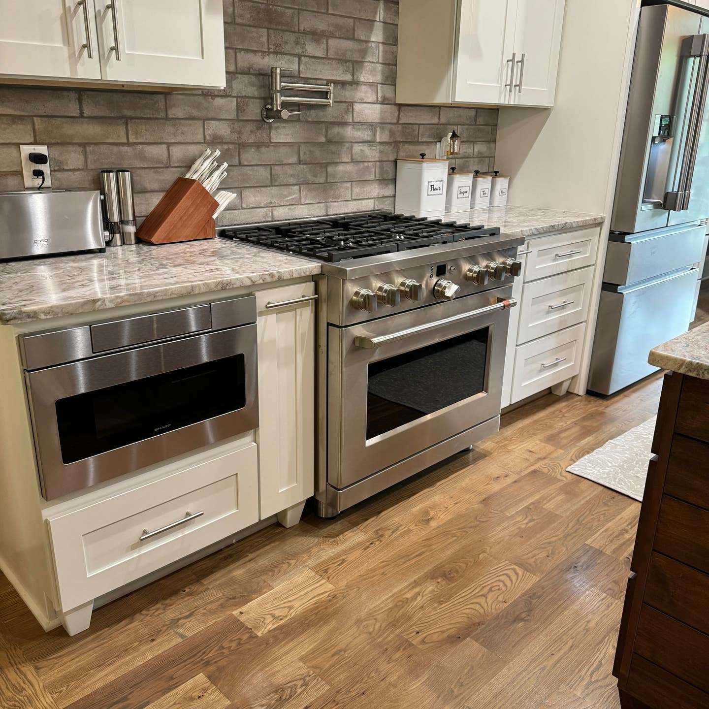 “We had to come up with something. We had to make a decision. It was either cheapen our product or carry someone else’s semi-custom, and I didn’t want to compromise what we were making,” says Smith. “We added our touch and we only sell semi-custom that we assemble now.”